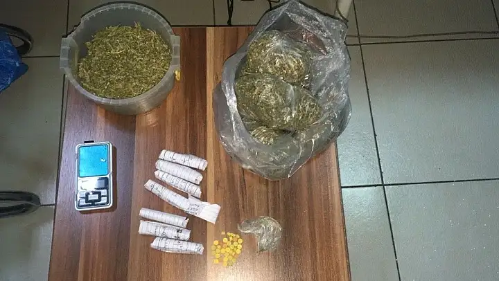 Operasyonda içerisinde esrar maddesi olan uyuşturucu saklama kabı ve uyuşturucu tartmakta kullanılan hassas terazi de ele geçirildi.
