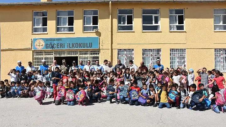 Göçeri İlkokulunda düzenlenen yardım dağıtım törenine Kahta Kaymakamı Ahmet Gazi Kaya, İlçe Jandarma Komutanı Teğmen Selçuk Çalıkuşu, İlçe Emniyet Müdür Durmuş Ali Özkan, İlçe Milli Eğitim Müdürü İbrahim Halil Tünçmen, okul idaresi ve öğrenciler katıldı.