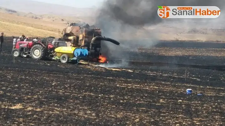 Elazığ'ın Baskil ilçesinde arpa hasadında çalışan biçerdöver, alev aldı, 10 dönümlük ekili alan kül odu.