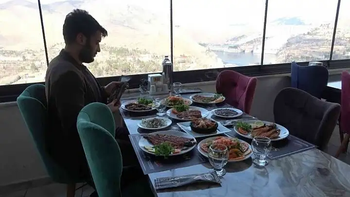 Dışarıdan gelen ziyaretçilerine alabalıktan yaptıkları birçok çeşit yemeği sunduklarını belirten restoran işletmecisi Ahmet Özdemir, 'Yaz aylarında olduğu gibi kışın da ciddi bir misafir kitlemiz var. Herkes Keban´a özellikle balık yemeye geliyor. Yaz aylarında şehir dışından hatta yurt dışından gelen misafirler mutlaka buraya uğrayıp alabalığımızın tadına bakıyor. Restoranımızda alabalığın 20´nin üzerinde yemeği var. Şimdi sadece Bu alabalık katmerde çok iddialıyız. Buraya gelen insanlar mutlaka onun için geliyor. özellikle Konya, Adana, Ankara ve diğer illerden misafirlerimiz geldi. Keban, dünyada en fazla alabalık ihracatı yapan yerdir. Balık denilince akla Elazığ´ın Keban ilçesi gelir. Biz de alabalığımızla iddialıyız ve dünyanın her tarafına ihracı olan balığı yiyenler bir daha yemek istiyor' dedi.