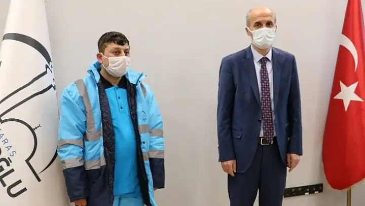 Dulkadiroğlu Belediye Başkanı Necati Okay, Kamu Külliyesi hizmet binasında yolda bulduğu parayı sahibine teslim eden temizlik görevlisi Halil İbrahim Çınar ile buluştu. Makam odasında bir müddet oturduktan sonra temizlik görevlisine teşekkür eden Okay, 'Çevre temizlik görevlimize çok teşekkür ediyoruz ve bize örnek bir davranış sergiledi. Hem de kamu görevlisi olmanın sorumluluğunu yerine getirmiş oldu. Aslında Dulkadiroğlu Belediyemizde çalışan personellerin bir timsali oldu kendisi. Kamu görevlisi olarak vatandaşlara hizmetin gerekliliğini yaptığı bu davranışıyla yerine getirdi. Bizler kendisini ödüllendireceğiz' dedi.