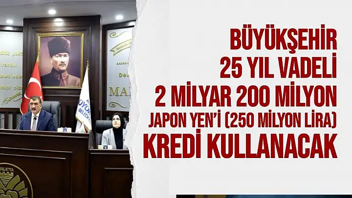 Büyükşehir 25 yıl vadeli 2 milyar 200 milyon Japon Yen'i (250 Milyon lira) kredi kullanacak