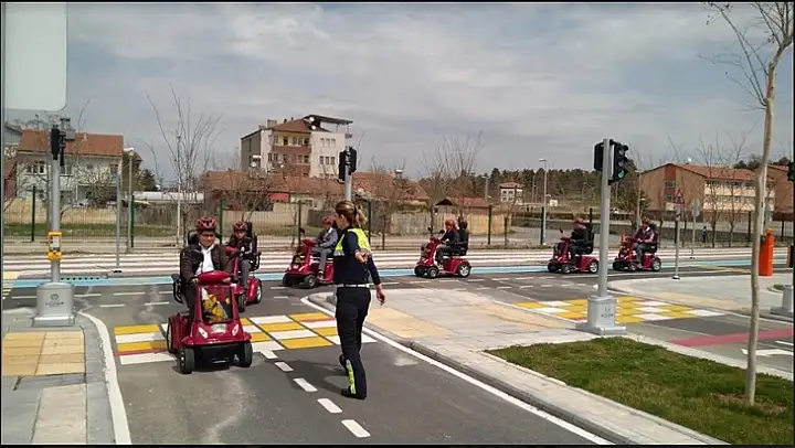 Trafik Eğitim Parkında öğrencilere polis memurları ve Büyükşehir Belediyesi görevlileri tarafından bir yandan trafik kuralları hakkında bilgiler verilirken, diğer yandan da trafik kuralları akülü araçlar ve bisikletler ile uygulamalı olarak gösteriliyor.