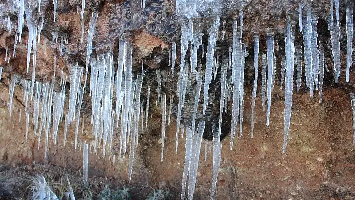 Adıyaman'da hava sıcaklıklarının geceleri eksi 7'ye kadar düşmesi nedeniyle buz sarkıkları oluştu.