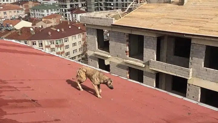 Elazığ'da bir binanın çatısına çıkarak mahsur kalan sokak köpeği itfaiye ekipleri tarafından kurtarıldı.