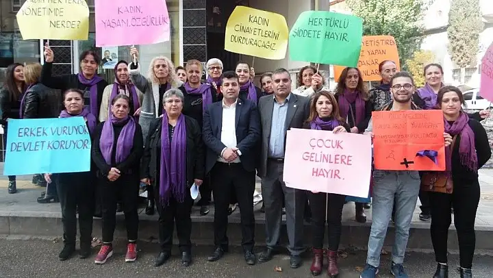 CHP Adıyaman İl Kadın Kolları Başkanı Fatma Ünlü ve partili kadınlar parti binası önünde basın açıklaması yaptı.