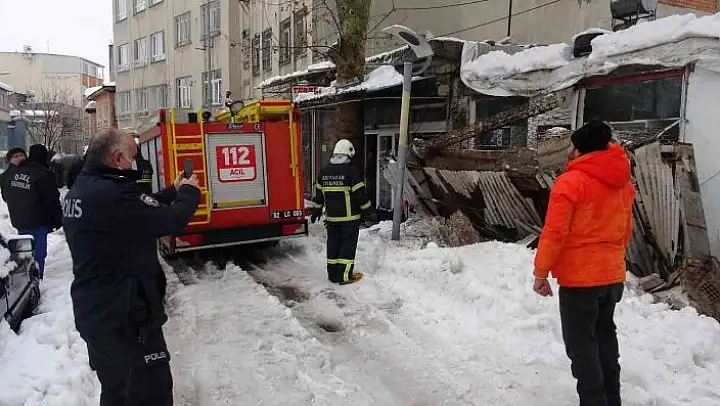 Adıyaman´da, kardan dolayı çöken bir işletmeye ait çatının altında kalan çocuk yaralandı. Kaldırımda yürüyen bir genç ise, saniye farkla çöken çatının altında kalmaktan son anda kurtuldu.