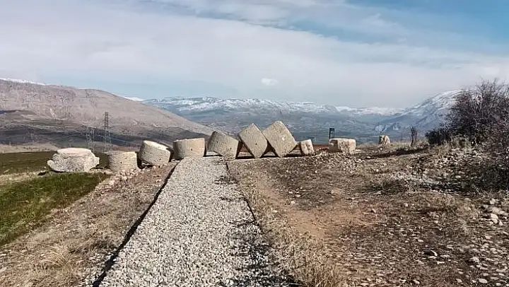 Kahramanmaraş merkezli depremler, Adıyaman´daki 2 bin yıllık Karakuş Tümülüsü´nde bulunan tonlarca ağırlıktaki `tokalaşma´ sütunla