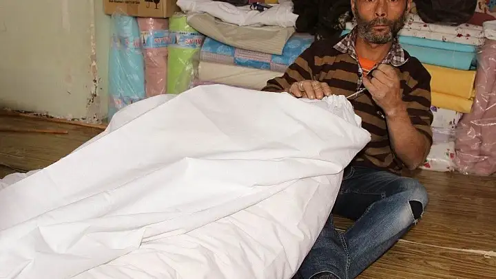 Yaz aylarında yünlerin hazırlanarak kışa hazırlandığını ifade eden yorgan ustası, 'Bir yorganı güzel kullanırsan 10 yıl kullanırsın. Bizim müşterilerimiz genellikle yünlerini yıkayıp, hazırlayıp dikimi için bize getiriyorlar ve biz yorgan haline getiriyoruz. Bizim Sivas'ta insanların yüzde 90'ı yün ağırlıklı yorgan kullanır. Elyaf olayı hazır zaten elyaf kullanmıyoruz. Bazen pamuk kullanıyoruz astım hastaları gibi hasta olanlar pamuk kullanıyor. Bizim yorgan yapım dönemimiz 4 aydır. Yaz ayları kışa yorgan yapım hazırlığı sürer. 4 ay çalışırız 8 ay pek fazla çalışamayız. Müşteriler yorganlarını yıkayıp hazırlıyor ve dikim için bize getiriyorlar. Kimi insanın evi sıcak oluyor ince yaptırıyor, kimi kalın yaptırıyor. Bu dönemde Sivas'ta doğalgazın kullanımıyla yorganlar inceldi. Battaniyenin sıcaklığı yorganın yerini tutmaz sarılıp yatma sıcaklığı bambaşka bir şey insana iç huzuru veriyor. Belki battaniye sıcak tutabilir ama yorganın sıcaklığı ayrı ana kucağı gibi. İşini düzgün yaparsan, zamana ayak uydurursan hiç bir şey ters gitmiyor. İşini seversen ve düzgün yaparsan işlerin iyi gidiyor, ama sevmezsen teknolojiye yenik düşüyor' dedi.