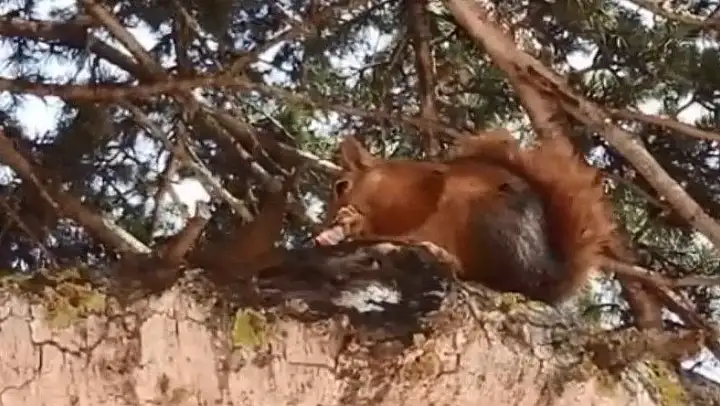 Bölgede yer alan sedir ağaçlarının sırt kısımları sincapların mekanı oldu. Evcil hayvanlar gibi davranan sincapların karnını doyurmak için mücadele ettiği gözlemlendi.
