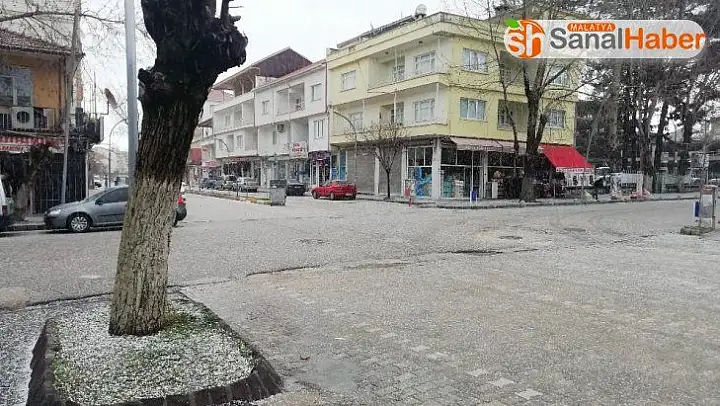 Adıyaman'ın Gölbaşı ilçesinde aniden başlayan dolu yağışı sokakları beyaza bürüdü.