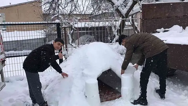Karın keyfini çıkarmak için kardan ev yaptıklarını ifade eden Ali Osman Omaç, '3 arkadaş yağan karın keyfini çıkarmak için bir karar aldık. Evimizin önüne kardan ev yapmayı düşündük. Bir buçuk saatte kardan evimizi yaptık. Evimiz bir metre yükseklikte ve bir buçuk metre genişliğinde. Mahallemizde yaşayanlar evimizi çok sevdi. Bizleri tebrik ettiler' dedi.