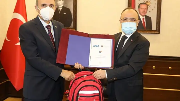 İçişleri Bakanlığı tarafından 2021 yılının 'Türkiye Afet Eğitim Yılı' olarak ilan edilmesi kapsamında Elazığ Valiliği´nde Vali Erkaya Yırık ile FÜ Rektörü Prof. Dr. Fahrettin Göktaş, hazırlanan protokolü imzaladı. Protokol sonrasında İl AFAD Müdürü Osman Pıhtılı, Vali Yırık ile Rektör Göktaş´a afet ve acil durum çantası hediye etti.