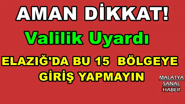 ELAZIĞ'DA BU 15 BÖLGEYE GİRİŞ YAPMAYIN