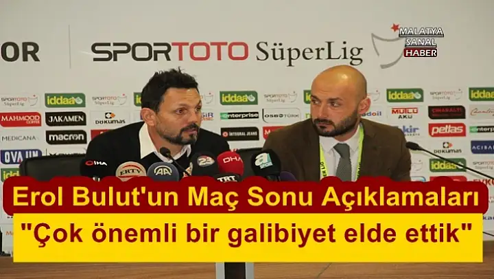 Evkur Yeni Malatyaspor-Galatasaray maçının ardından konuşan Evkur Yeni Malatyaspor Teknik Direktörü Erol Bulut, "Futbolcularımı tebrik ediyorum, çok önemli bir galibiyet elde ettik" dedi.