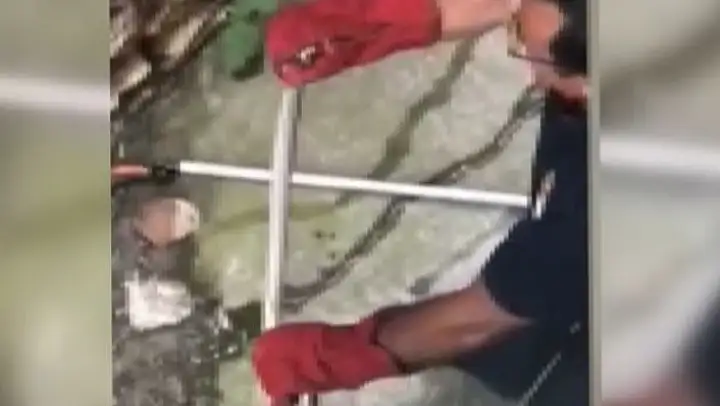 Çevredekilerin korku dolu bakışları arasındaki yılanı yakalama anları ise cep telefonu kamerasıyla görüntülendi.