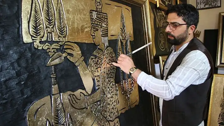 15 yıldır görsel sanatlarla uğraştığını belirten Fatih Bakır, 'Son zamanda artık ihtiyaca göre şekil alıyorum. Yaptığımız ş şuan ahşap oyma ve altın varak sanatını buluşturarak, objeleri göstermek istiyoruz. Elimizden geldiğince yapamaya çalışıyoruz. Yapım süresi objeye göre değişiyor. 3 saat süren ve 3 ay süren görsellerde oluyor. Üzerindeki ayrıntı ve motife göre şekil alıyor. Urartuları işledik. Var olan motifleri biraz daha belirginleştirerek, boyunlarını ölçeklendirerek oyduk. Kemer motiflerindeki görselleri bile büyütüp ahşaba işledik ve gideceği mekanda sergilenecek. Ayos diye Afrika ağacı ile yapılıyor. Ama şuada MDF oyuyoruz. Gürgen, meşe, ıhlamur ağaçlarını oyuyoruz. Ama istediğimiz ölçüde olmadığı için bu aralar MDF oyuyoruz. Onu kimyasallarla kitleyip, uzun senelere mukavemetini artırarak çalışmaya devam ediyoruz. Şuan Katar ile çalışıyorum. Almanya, Rusya ve Azerbaycan´a oylamalar gönderiyoruz. Bence sanat kopya çekmektir. Baktığımız herhangi bir şeyi belli bir çerçeveden geçirip yüzeye aktarıyoruz. Ahşabın çok farklı bir dokusu var. Aslında ahşap ile insan arasında herhangi bir kimyasal sokmamak lazım. Ahşabı hissetmek ayrı bir şey. Ahşap ile insan arasında çok güzel bir ilişki olduğuna inanıyorum. Severek yapmaya çalışıyorum' dedi.