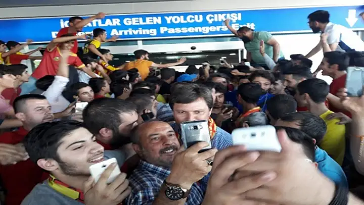 Taraftarın tezahüratları ve sevgi gösterileri arasında uzun süre havaalanından ayrılmayan futbolcular, fotoğraf çektirmek isteyenleri de geri çevirmedi.