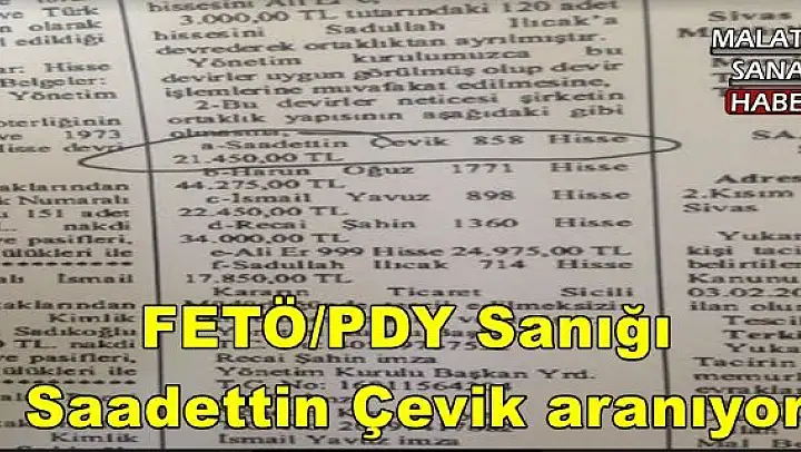 kapsamında arananlar arasında olduğu öğrenildi. Firari ortağın Ticaret Sicil