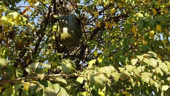 'Görenler gözlerine inanamadı, 10 kiloluk kabak ağaçta yetişti'