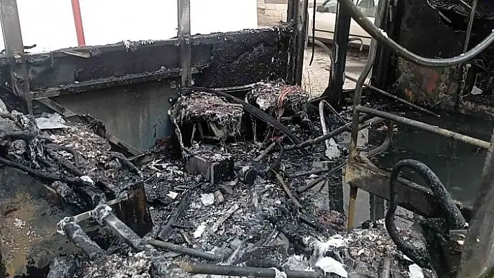 Sivas´ta park halindeki halk otobüsünün üzerine düşen elektrik kabloları otobüsü cayır cayır yakarak kullanılma hale getirdi.