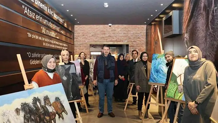 Sivas´ta Halk Eğitimi Merkezi ve Akşam Sanat Okulu kursiyerleri tarafından Hamidiye Kültür Bahçesi Savaş Atları Müzesi´nde 'Savaş Atları' temalı yağlı boya resim sergisi açıldı.