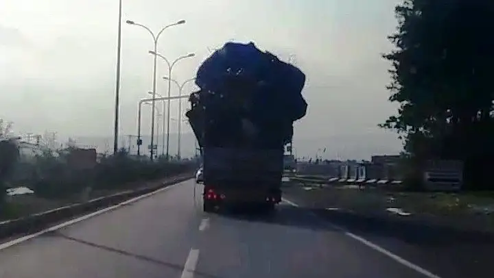 Kamyon, kasasına yüklenmiş hurdalar ve hurdaların üzerine örtülü parçalanmış naylon ile yoluna devam etti. Kamyonun üzerinde bulunan hurdaların yola düşmesi an meselesi olurken, olası kazaya neden olmamak için diğer sürücüler temkinli seyretti.