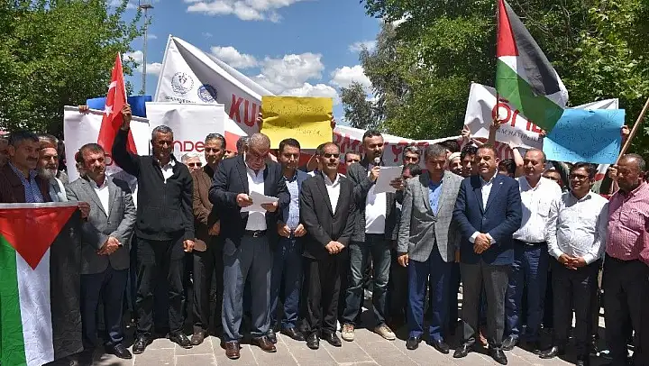 Adıyaman'ın Kahta ilçesinde 36 sivil toplum kuruluşundan oluşan Kahta Gönüllüler Platformu, ABD'nin Kudüs'te büyükelçilik açması ve İsrail'in Gazze'de 59 Filistinliyi şehit etmesini protesto etti.
