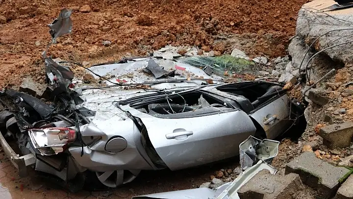 'İstinat duvarı çöktü araçlar toprak altında kaldı'