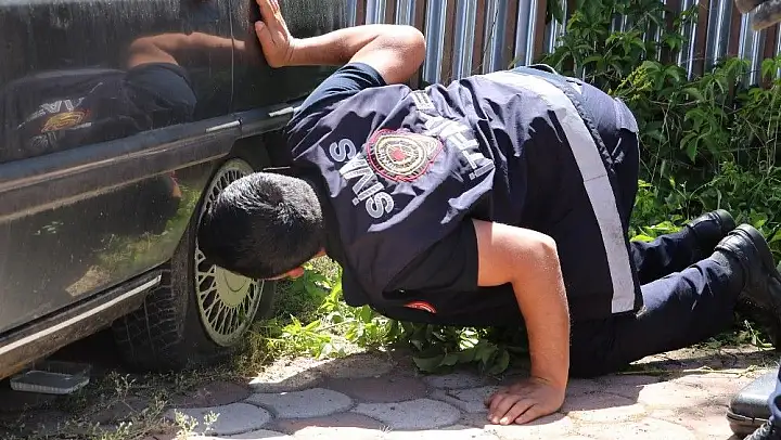 Sivas'ta park halinde bulunan otomobilin arka tekerlek kısmında mahsur kalan yavru kedi itfaiye ekipleri tarafından kurtarıldı.