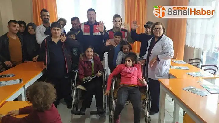 Malatya'nın Yeşilyurt İlçe Jandarma Komutanlığına bağlı jandarma trafik timi Engelliler Haftası nedeniyle El ele Özel Eğitim ve Rehabilatasyon Merkezi öğrencilerine trafik eğitimi verdi.