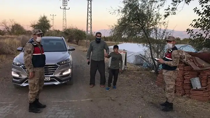 Elazığ´da jandarma ekipleri devriye görevi yaparken arazide kayıp olan 12 yaşındaki zihinsel engelli çocuğu bularak ailesine teslim etti.