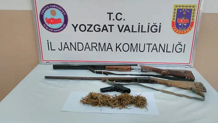 Edinilen bilgiye göre; Yozgat İl Jandarma Komutanlığı ekipleri, il genelinde düzenledikleri operasyonlarda Sarıkaya ve Kadışehri ilçelerinde 40 kök kenevir bitkisi ve 100 gram kubar esrar maddesi ele geçirdi. Ayrıca iki tüfek ve birde ruhsatsız tabanca ele geçirildi. Ekipler olayla ilgili bir şüpheliyi gözaltına aldı. Jandarmadaki işlemlerin ardından şüpheli adliyeye sevk edildi.