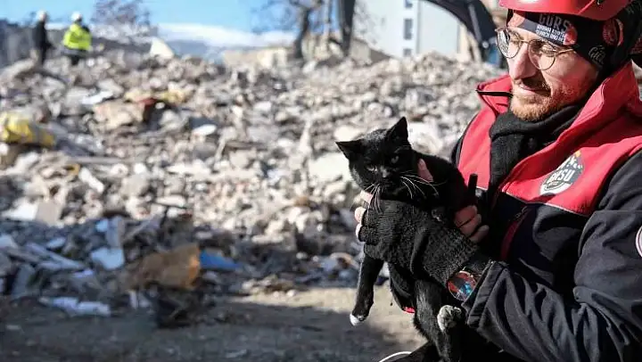 Kahramanmaraş´taki depremde bir bina enkazında mahsur kalan `Ardıç´ isimli kedi 174 saat sonra canlı olarak çıkarıldı.