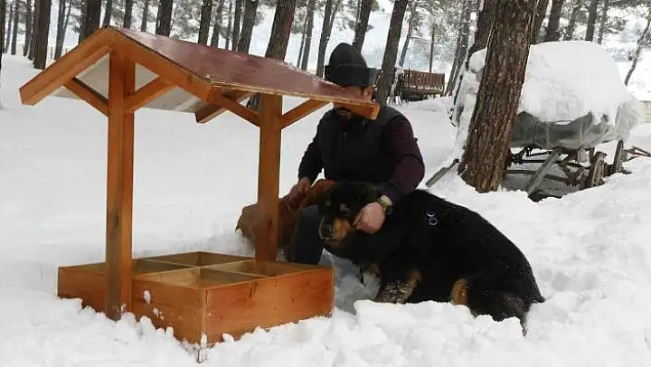 Kahramanmaraş´ta kış günlerinde sokak hayvanları için imal edilen onlarca beslenme ünitesi, kedi evi ve köpek kulübesi şehrin muhtelif yerlerine konumlandırıldı.