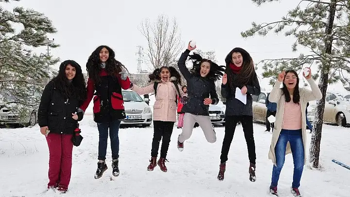 Kar tatilini fırsat bilen öğrenciler ise soğuğa aldırmadan kardan adam yaptı.