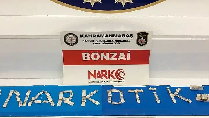 Kahramanmaraş'ta bir kişi 90 paket bonzai ve 24 adet uyuşturucu hapla yakalandı.