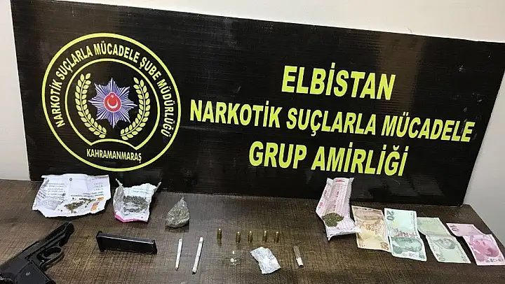 Operasyon kapsamında Elbistan İlçe Emniyet Müdürlüğü Narkotik Suçlarla Mücadele Grup Amirliği ekipleri, M.Ö.'yü takibe aldı. Takip sonrası yakalanan M.Ö.'nün aracında, ikametinde ve üzerinde yapılan aramda, çeşitli uyuşturucu maddelerle birlikte 1 adet ruhsatsız tabanca ele geçirildi.