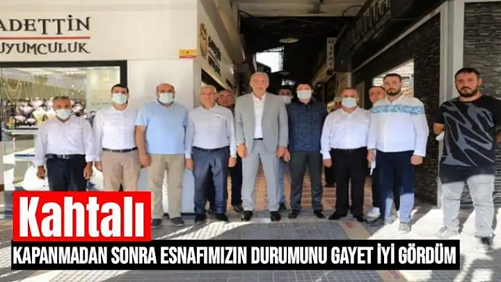Pandeminin yoğun olduğu dönemde esnafların kısıtlamalardan dolayı sıkıntı çektiklerini ancak pandeminin azalıp kısıtlamaların kademe kademe kaldırılmasıyla esnafların da işlerinin açıldığını öğrendiklerini söyleyen Kahtalı, "Esnaflarımızın genel durumunun iyi olduğunu, Allah´a şükürler olsun iyi gördük. Pandemiden sonra o kapanmadan sonra ki durum gayet iyi. Geçtiğimiz günlerde bakırcılar çarşını gezdik. Bugün de Söğütlü Cami´nin çevresindeki esnaflarımızı geziyoruz. Esnaflarımız Allah´a şükürler olsun diyorlar. İşlerimiz açıldı, iş yapıyoruz diyorlar. Ekonomik olarak da iyiye gidiyor. Gerek hükümet anlamında gerekse de Belediye anlamında çalışmalarımızı sürdüreceğiz" şeklinde konuştu.