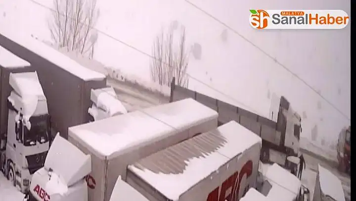 Sivas'ta bir sürücü kar küreme aracını seyredenken neredeyse yoldan geçmekte olan tırın altında kalıyordu, bu anlar güvenlik kamerasına yansıdı.