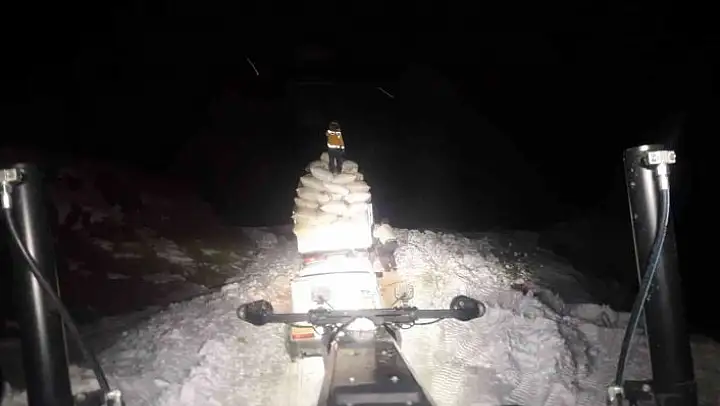 Elazığ´ın Sivrice ilçesinde yolda kalan saman yüklü kamyonet, İl Özel İdaresi ekiplerinin yoğun çalışması sonucu kurtarıldı.