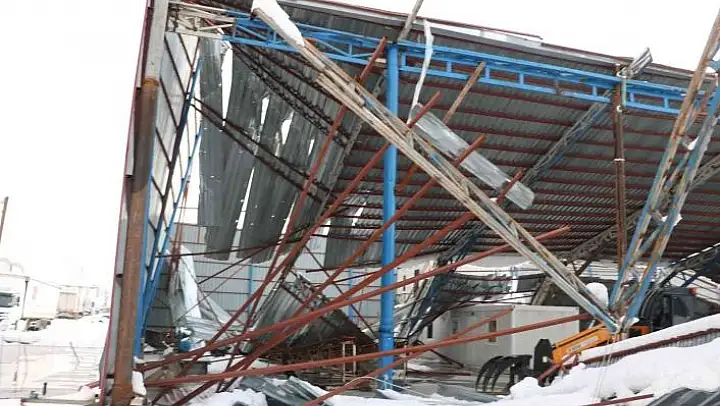 Kahramanmaraş´ta inşaat aşamasında olan geri dönüşüm fabrikasının çatısı yağan kara dayanamayarak çöktü.