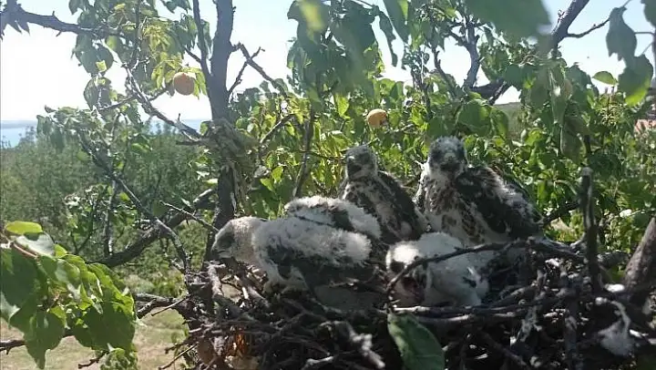 Elazığ´da bir vatandaş kayısı hasadı yaparken ağacında atmaca yuvası gördü. Yuva zarar görmesin diye duyarlı bir davranış sergileyen va