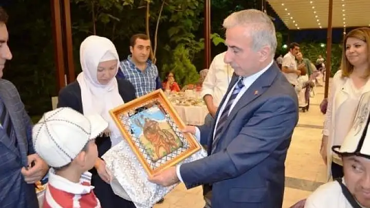Kırgız aile, Vali Kamçı'ya kalpak ve Kırgız savaşçıyı tasvir eden bir resim hediye ettiler. Vali Kamçı iftar sonrası vatandaşlarla vedalaşarak ayrıldı.