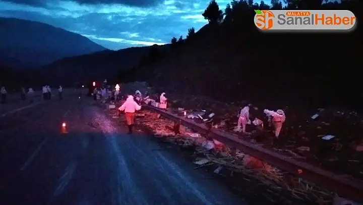 Kaza, gece geç saatte Adıyaman'ın Gölbaşı ilçesine bağlı Ozan köyü yakınlarında meydana geldi. Adana istikametinden Bingöl'e giden Sezgin Doğan yönetimindeki 44 EJ 206 plakalı kamyon sürücüsünün direksiyon hakimiyetini kaybetmesi sonucu devrildi. Yaklaşık 300 metre kadar sürüklenen kamyon bariyerlere çarparak durabildi.