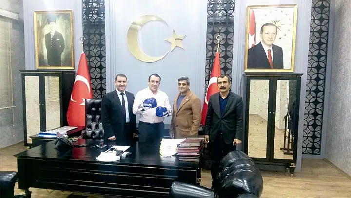 Kick Boks Federasyonu Güneydogu Bölge Başkanı Haluk Erdoğan Adıyaman'ın Kahta ilçesine gelerek, Kaymakamı Ahmet Gazi Kaya'yı ziyaret etti.
