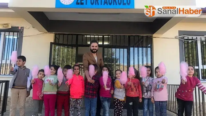Köy okulu öğrencilerine pamuk şeker sürprizi