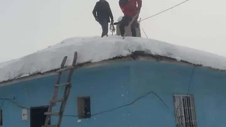 Kahramanmaraş´ın Göksun ilçesindeki Ericek Müdürler İlkokulu öğretmeni ve okul aile birliği üyeleri okulun önündeki ve çatısındaki karları temizledi.