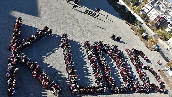 Adıyaman'da Kahta Türkiye Petrolleri Kahta Kız Anadolu İmam Hatip Lisesi öğrencileri, Kudüs konusuna dikkat çekmek amacıyla okulun bahçesinde bedenleriyle 'Kudüs' yazdı.