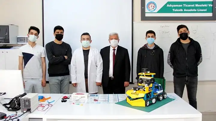 Adıyaman Ticaret Meslek ve Teknik Anadolu Lisesi Bilişim Teknolojileri Öğretmeni ve Ar-Ge Sorumlusu Orhan Güneş öncülüğünde öğrencilerin tasarladığı robot ile TÜBİTAK ve TEKNOFEST´e başvurdu.